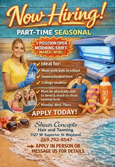 Shear Concepts is a full service hair and tanning salon. We have a family friendly atmosphere welcoming men, women and children. Walk-in services are always welcome and appointments are available. We currently have 7 different stylists on staff who are ready to create a new you!